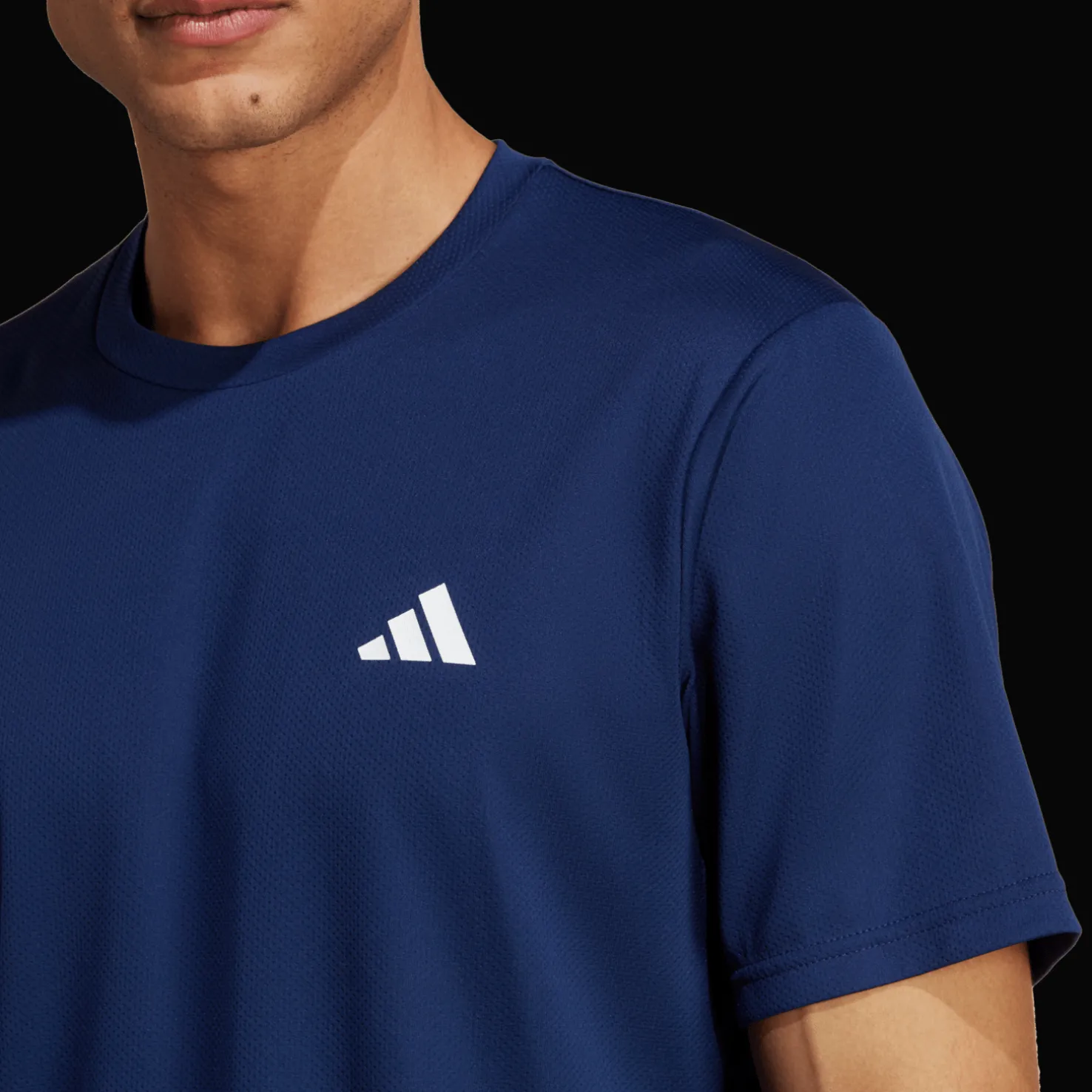 T-paita on valmistettu kierrätetyistä materiaaleista, mikä on osa adidaksen pyrkimyksiä vähentää muovijätettä.