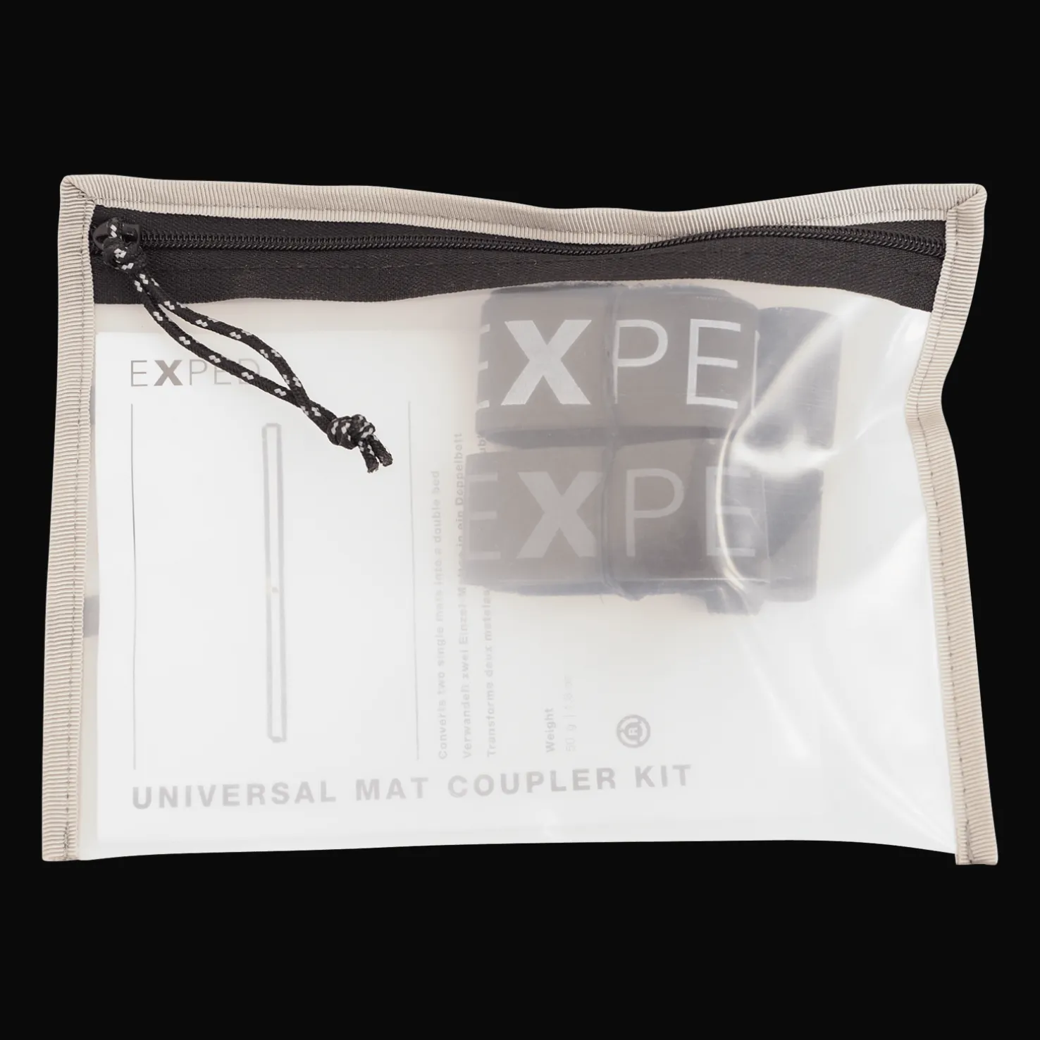 Exped Universal Mat Coupler Kit -hihnoja käytetään kahden yksittäisen makuualustan yhdistämiseen parivuoteeksi.