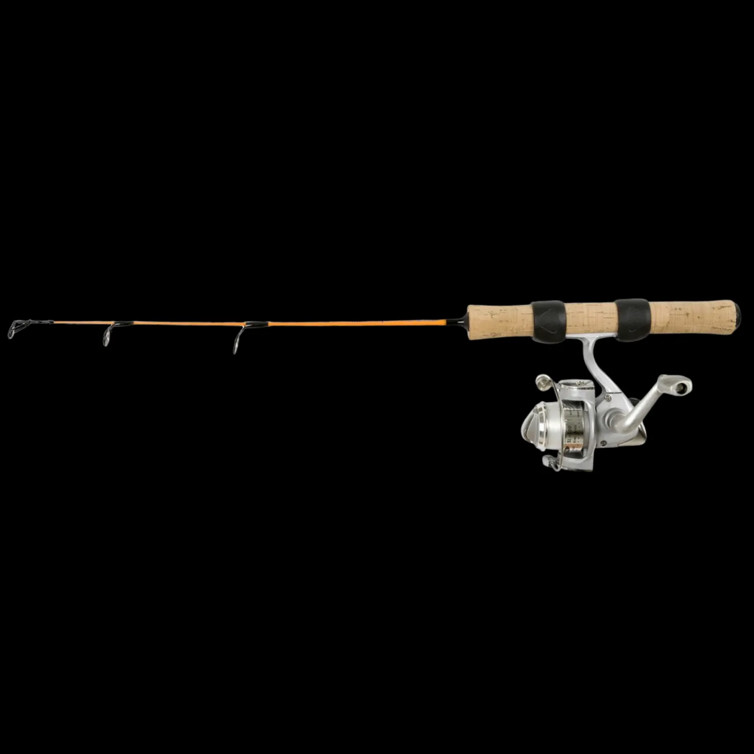 Pilkkivapa, jossa haspelikela ja nopeasti kelattava siima. 50,8 cm pitkä. Mukava korkkikahva, yksinkertainen haspelikela, jossa 1 kuulalaakeri. Valmis otettavaksi käyttöön.