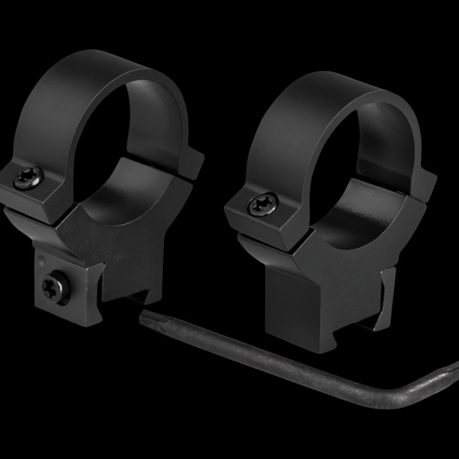 Warne Maxima Korkea 22 LR eli pienoiskiväärin kiikaritähtäimen kiinnitysrenkaat. Korkea malli, soveltuu 1'' runkoputkella varustetuille kiikaritähtäimille.