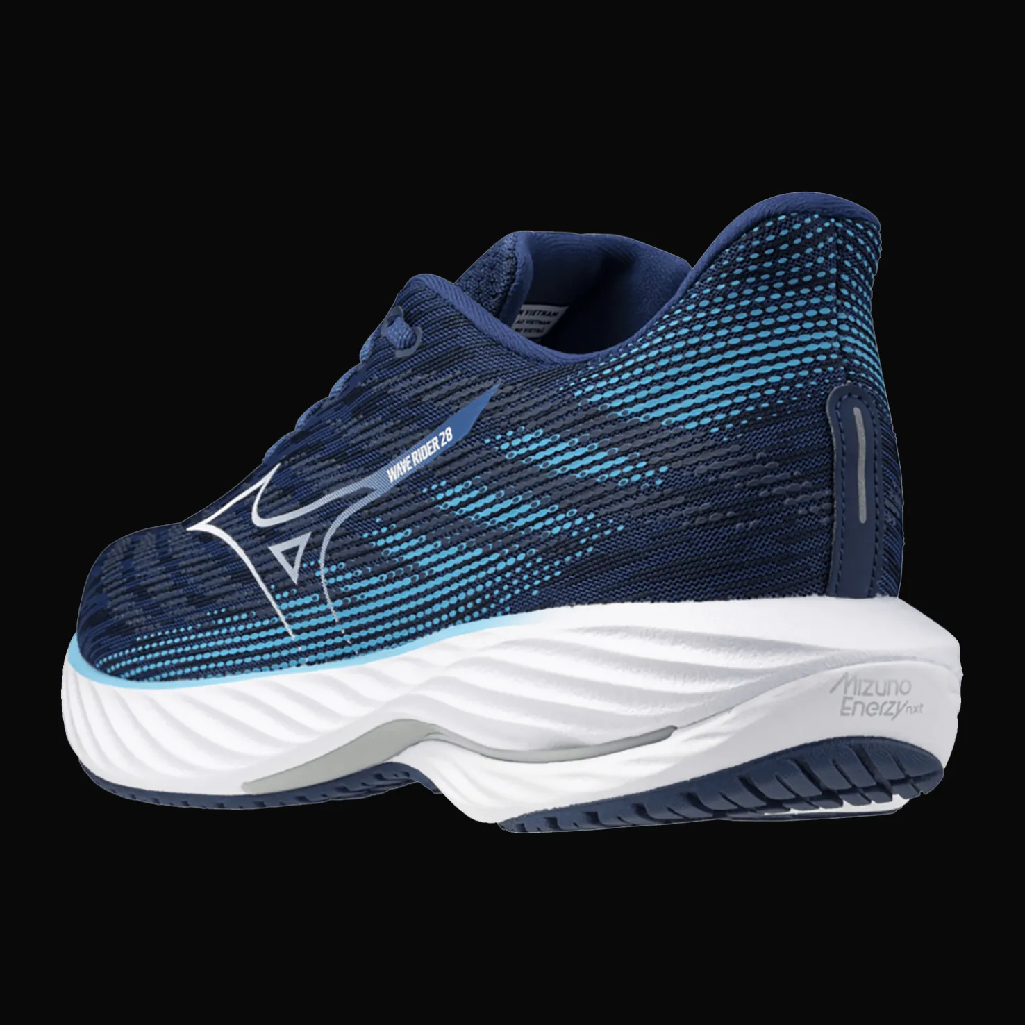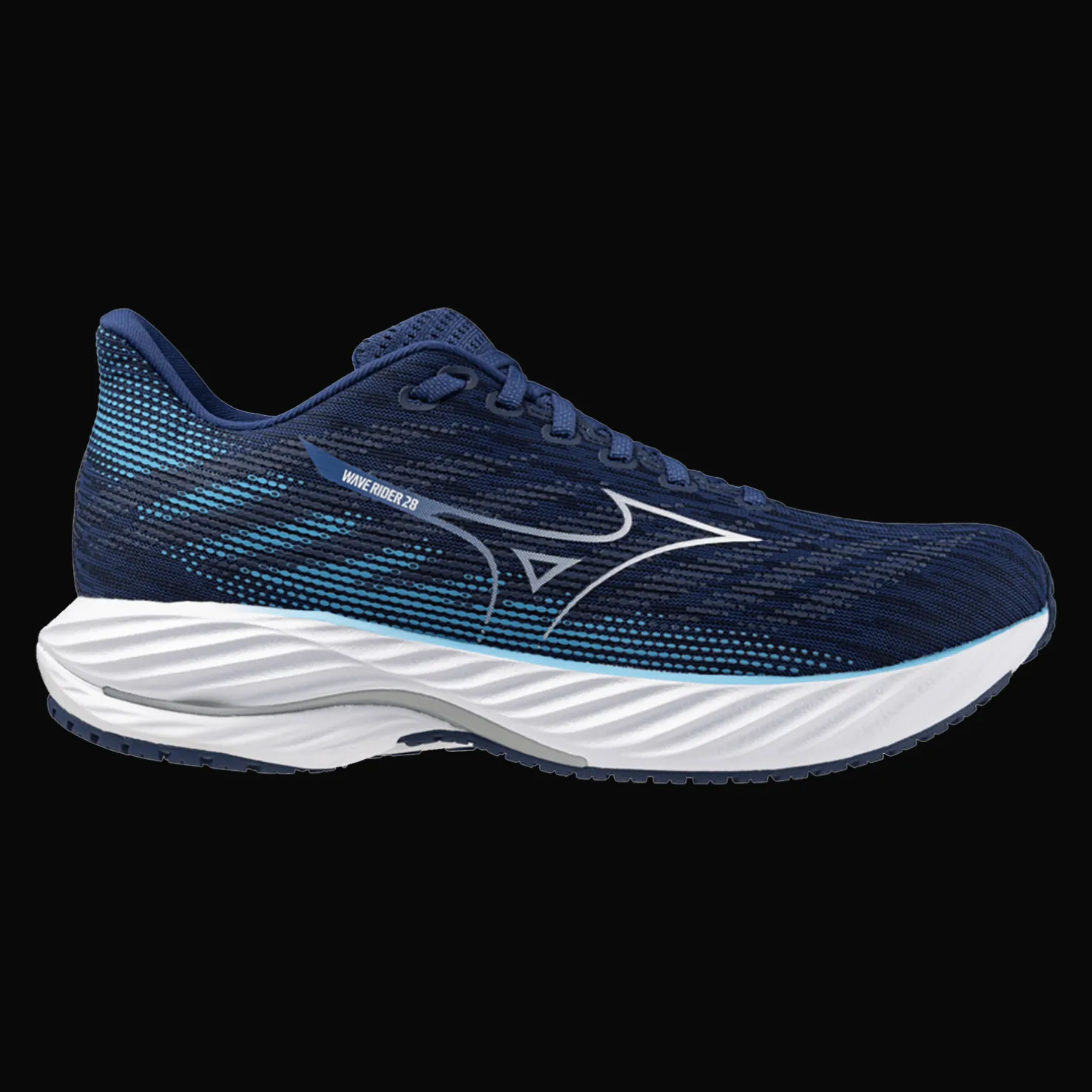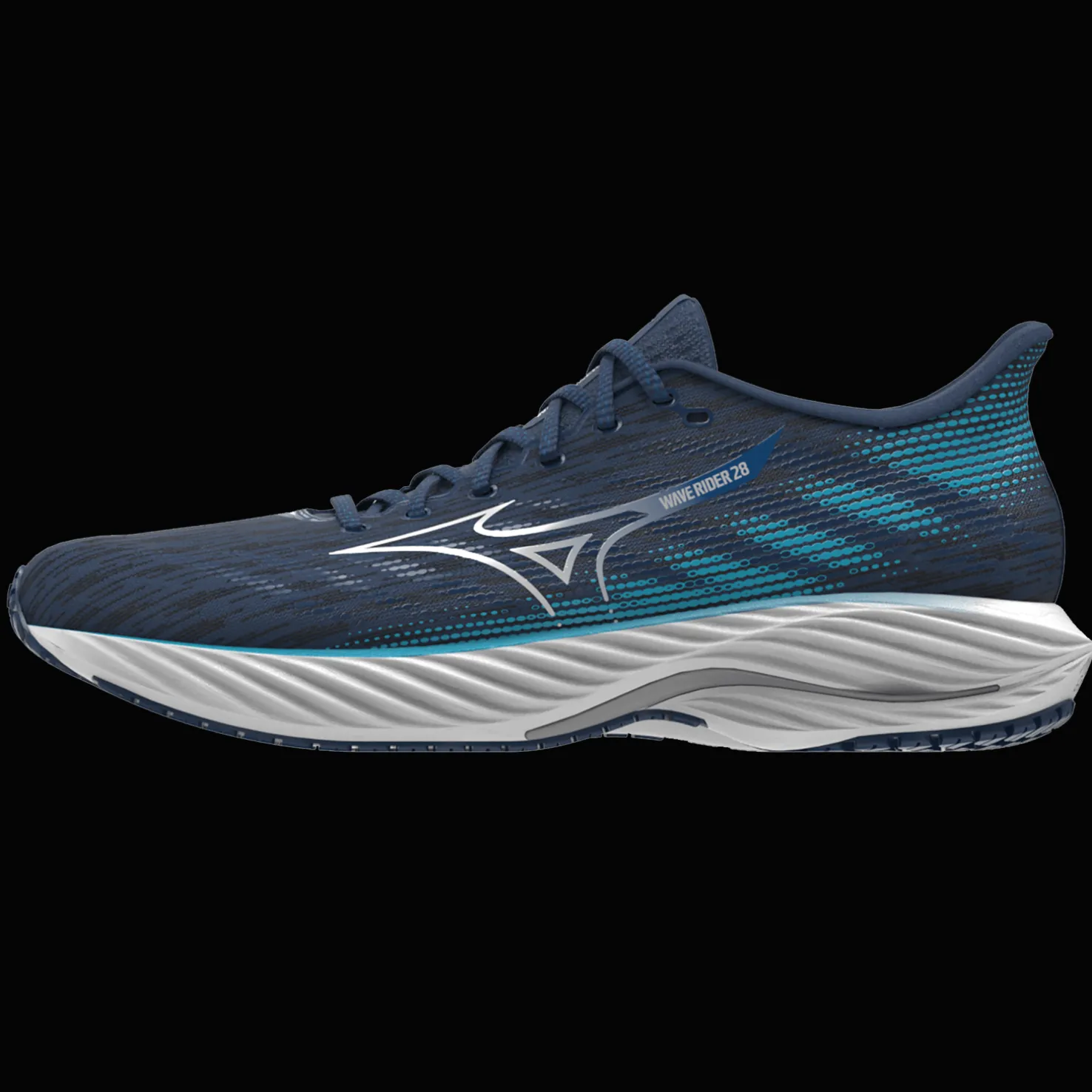 Mizuno Wave Rider 28 -kengät ovat mukavat juoksukengät. Hengittävä Jaquard Air Mesh -verkko takaa hyvän hengittävyyden ja mukavuuden juoksulenkin aikana.