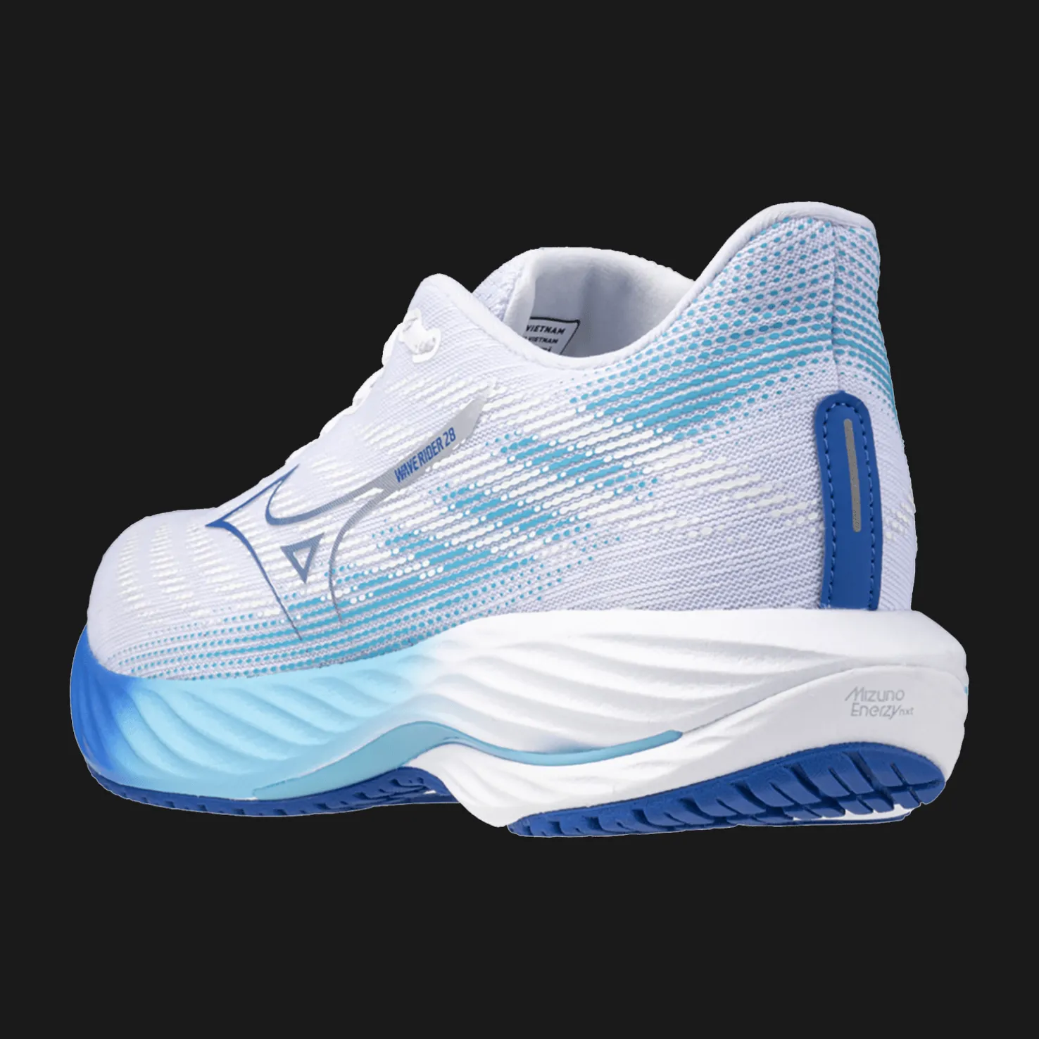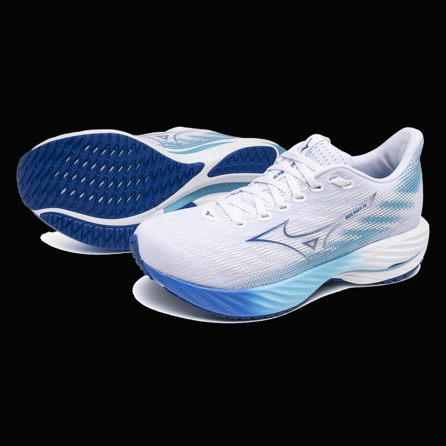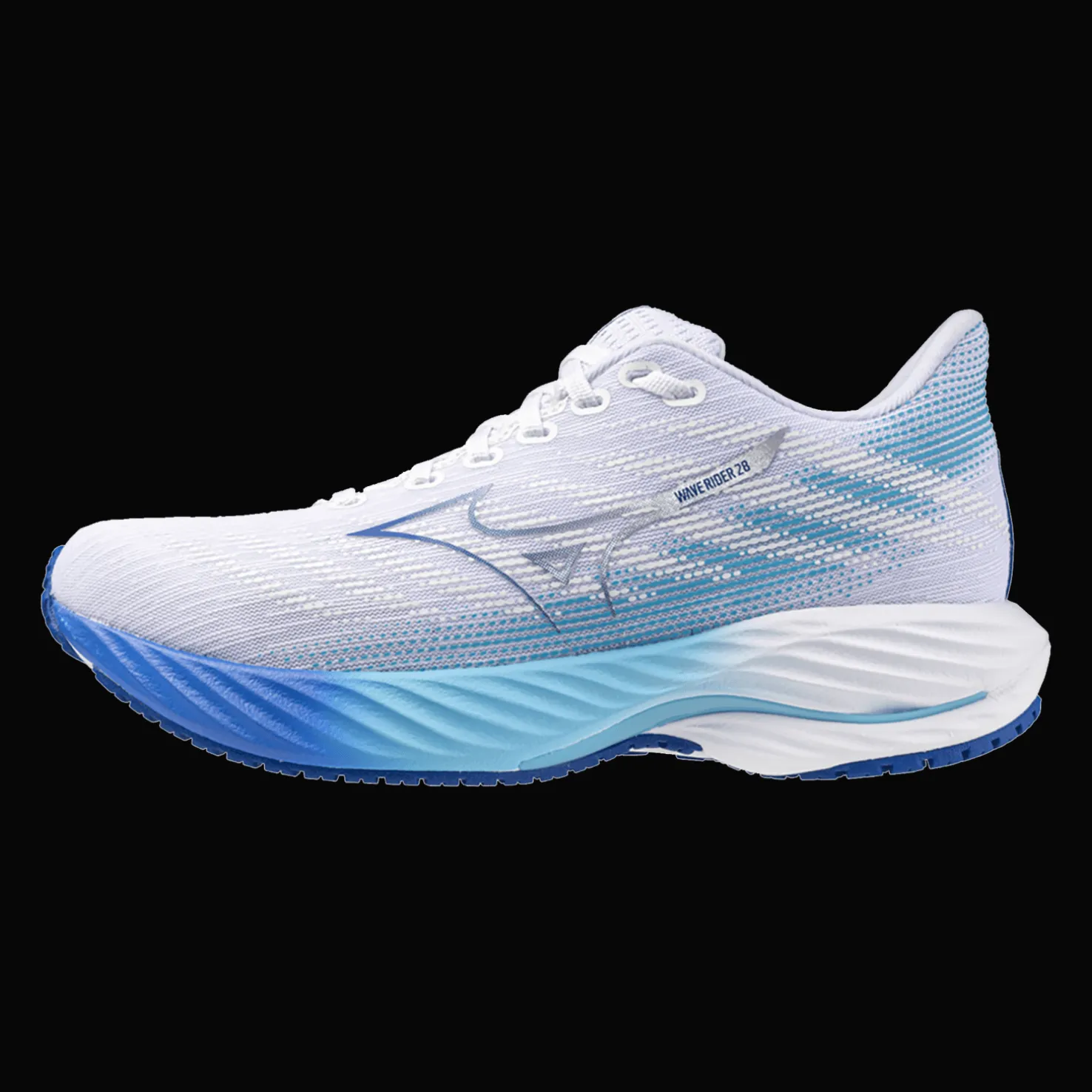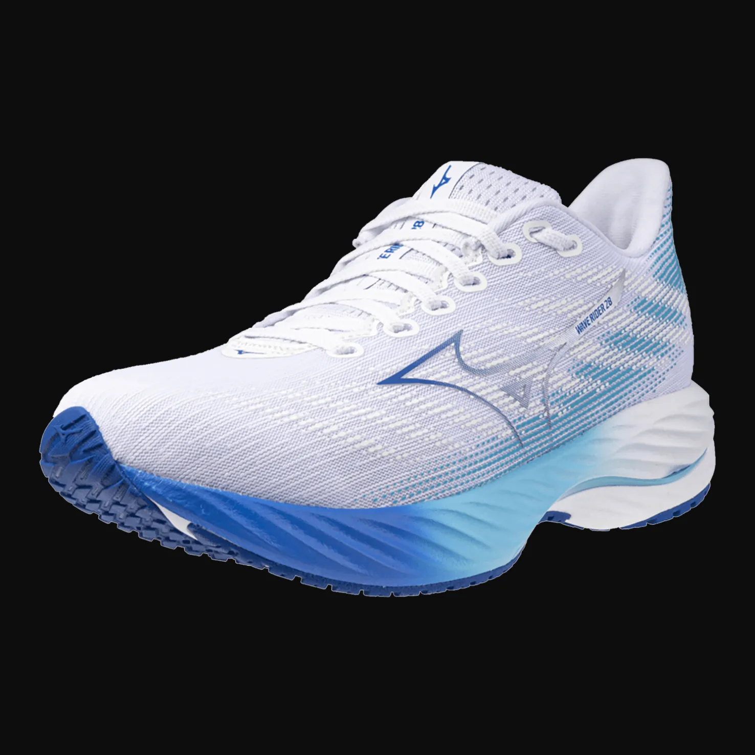 Mizuno Wave Rider 28 -kengät ovat mukavat juoksukengät. Hengittävä Jaquard Air Mesh -verkko takaa hyvän hengittävyyden ja mukavuuden juoksulenkin aikana.